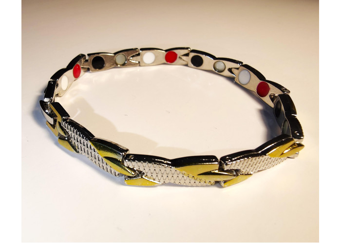 Браслет спочатку посилений вставками з магнітами, які сприяють покращенню кровообігу, забезпеченню енергією та витривалості, зняття втоми та фізичної напруги.